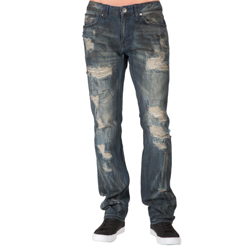 Mens Slim Straight Bleach Washed Distressed Premium Denim Jeans